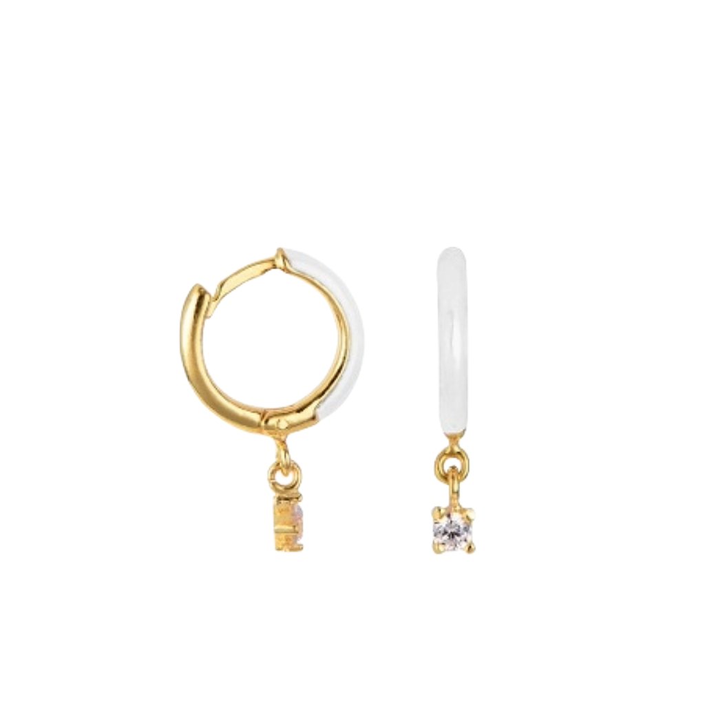 ✨ Bílé náušnice – kroužky se zirkonovým přívěskem