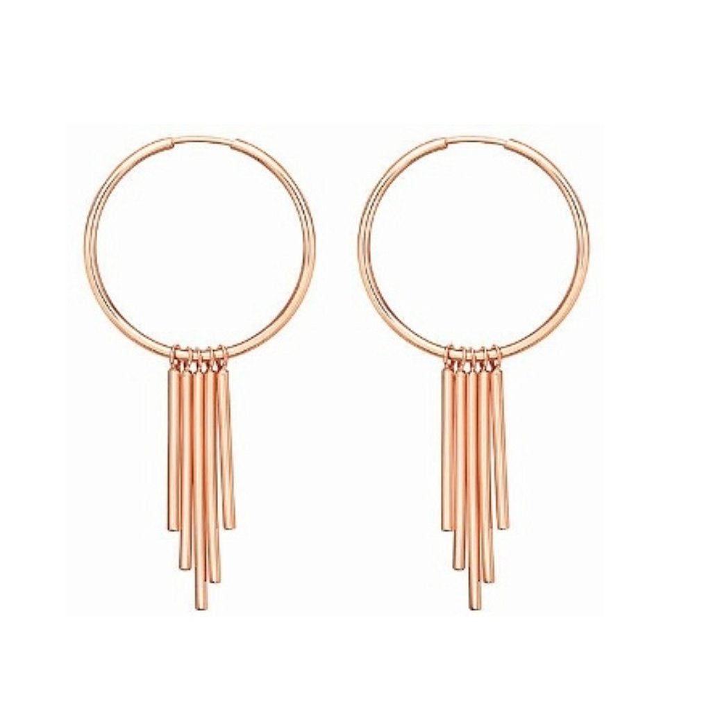 🤍✨ Elegantní stříbrné náušnice s třásněmi potažené růžovým zlatem představují dokonalou kombinaci jemnosti, ženskosti a luxusního vzhledu 🌸. Minimalistický kruhový základ doplněný o pohyblivé třásně v teplém zlatavě růžovém tónu vytváří harmonický design, který působí moderně a velmi sofistikovaně.