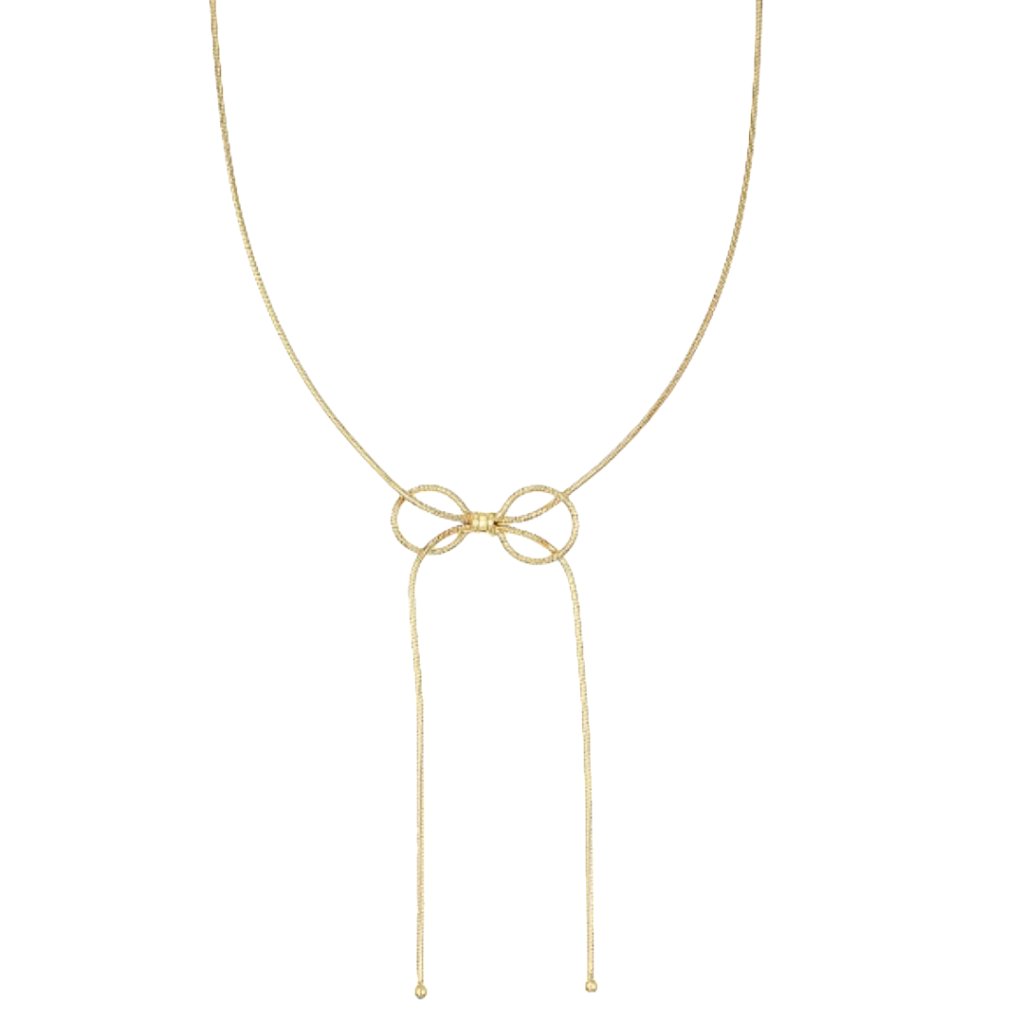 Elegantní pozlacený stříbrný náhrdelník s mašlí Golden Bow Drop