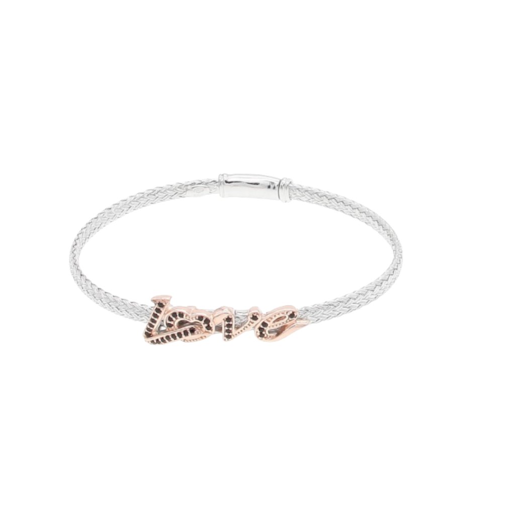 Elegantní stříbrný náramek s růžovým zlatem Love Script