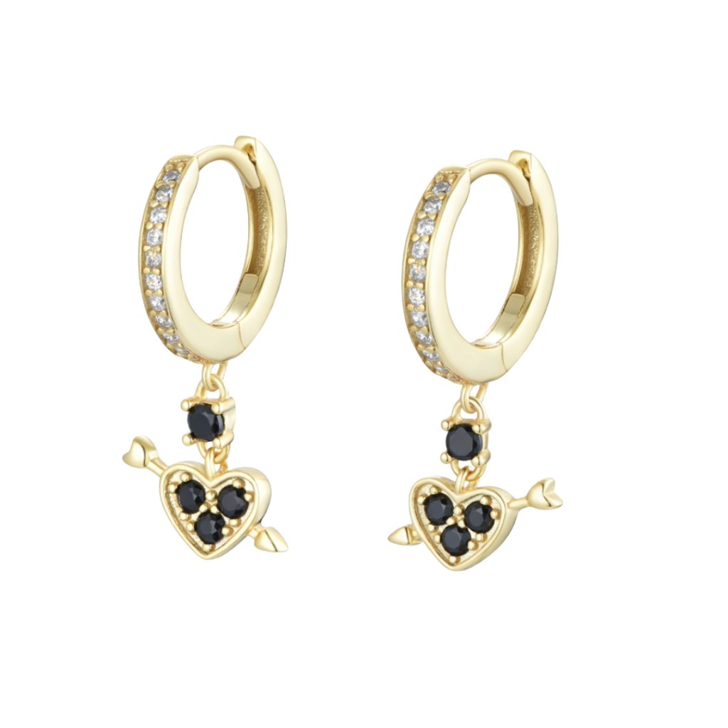 Pozlacené náušnice Cupid Midnight představují spojení romantiky, elegance a moderního stylu. Design náušnic vychází ze symboliky Amorova šípu – srdce prostřelené šípem představuje lásku, vášeň a silné emoce.