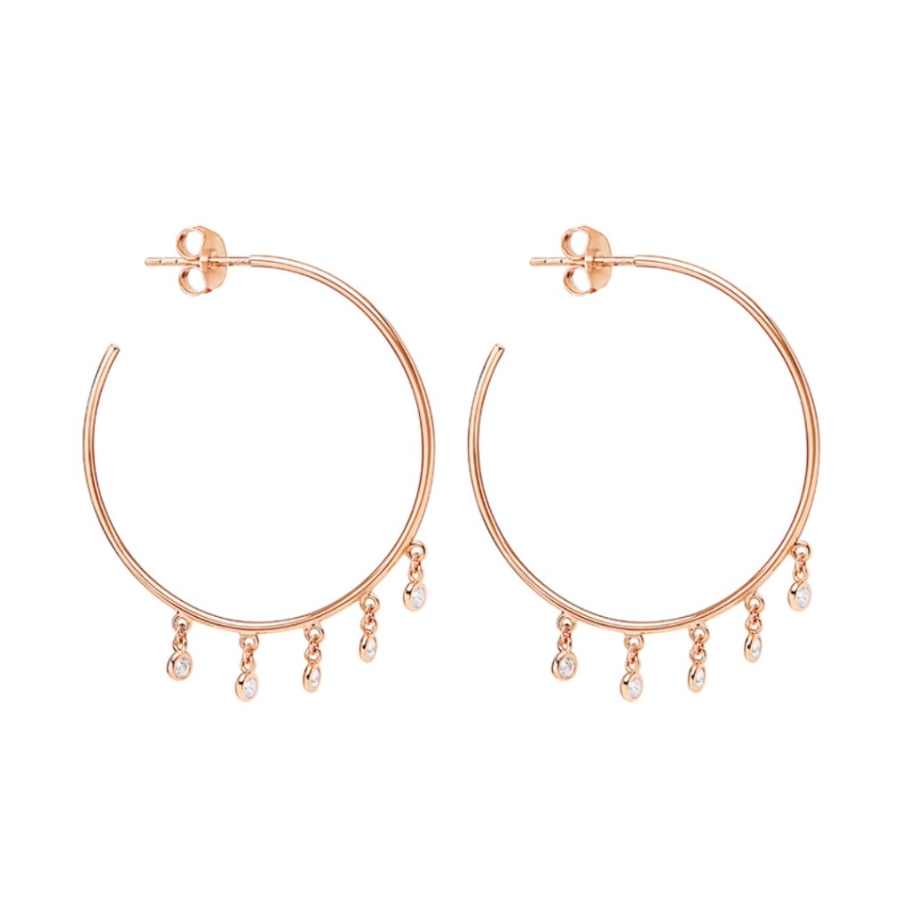 Náušnice kruhy s růžovým pozlacením a zirkony Rose Sparkle Hoops