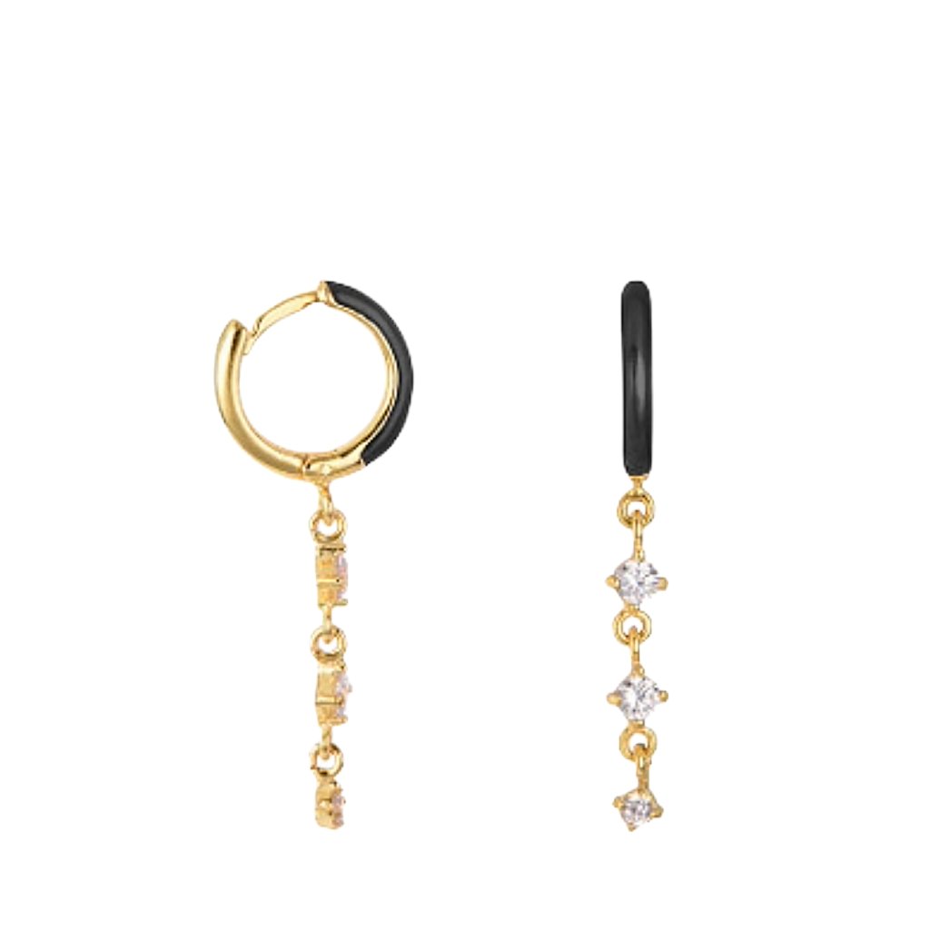 ✨Černé smalované náušnice - kroužky se zirkonovým řetízkem