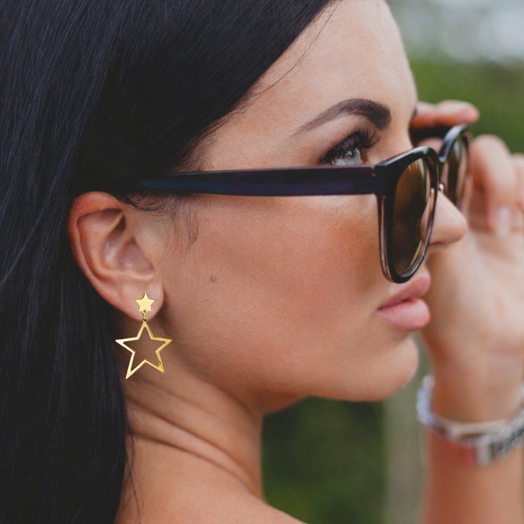 Pozlacené náušnice Golden Starlight jsou šperkem inspirovaným krásou noční oblohy a symbolikou hvězd. Elegantní kombinace dvou hvězd – malé plné hvězdičky a větší otevřené hvězdy – vytváří harmonický a moderní design, který působí velmi lehce a stylově.