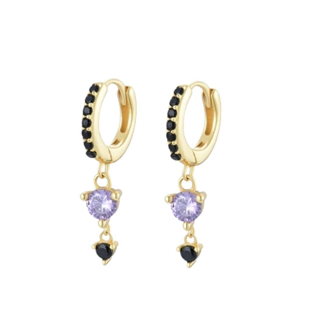 Pozlacené kroužky náušnice s černými a fialovými zirkony
