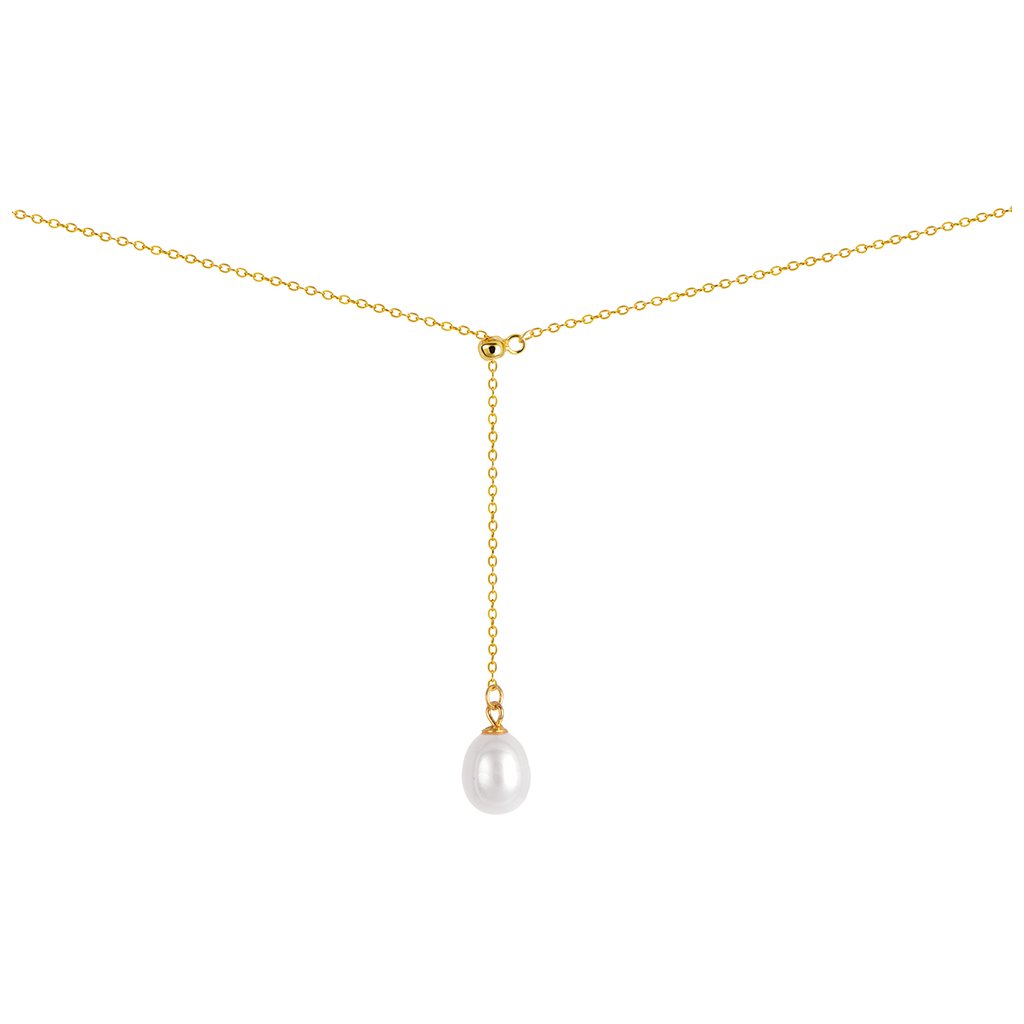 Pozlacený náhrdelník s perlou v kapce - Y tvar
