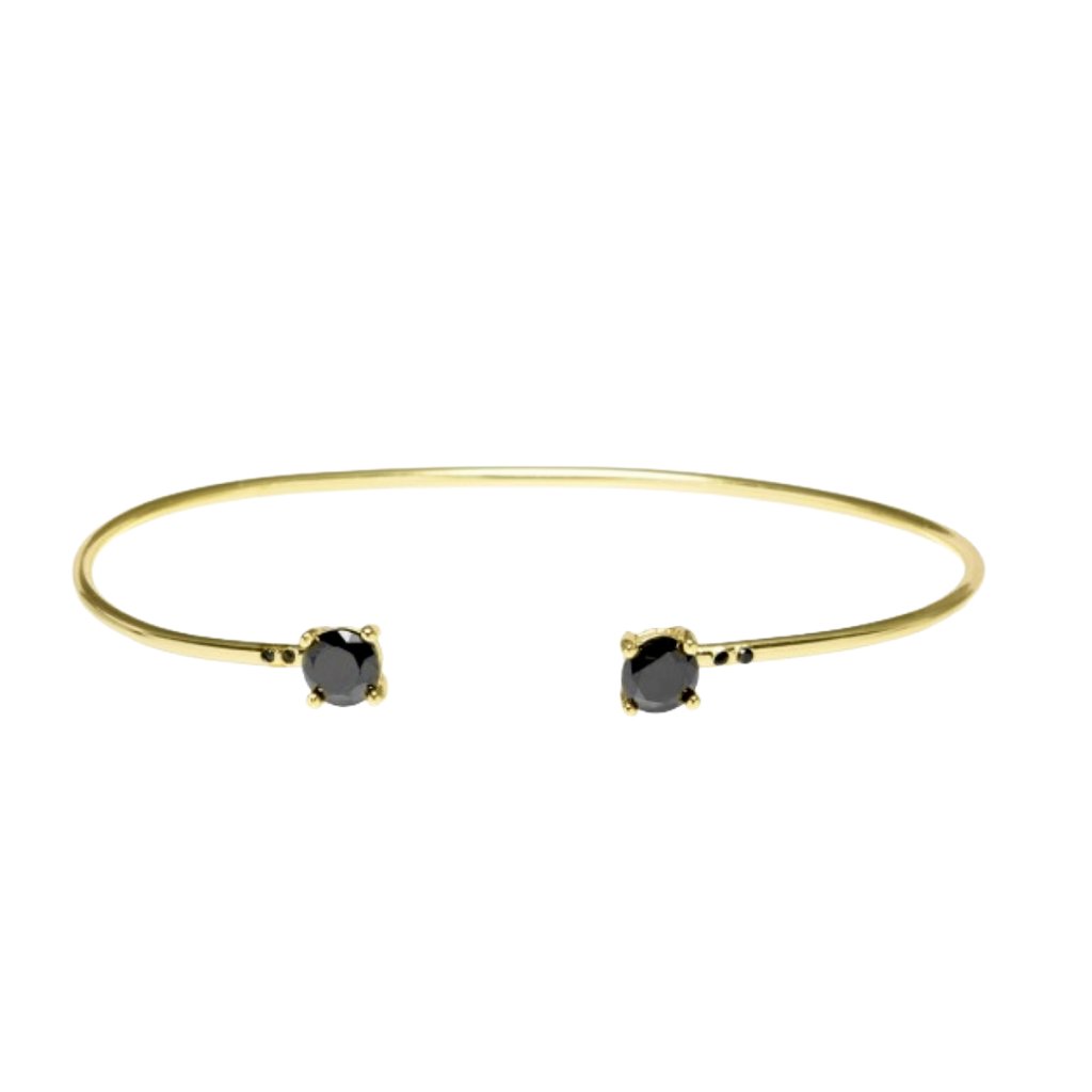 Pozlacený stříbrný náramek se dvěma černými kameny je stylovým doplňkem pro každodenní nošení i slavnostní příležitosti. Minimalistický otevřený design se snadno přizpůsobí zápěstí a působí moderně, nadčasově a velmi ženským dojmem ✨🖤.