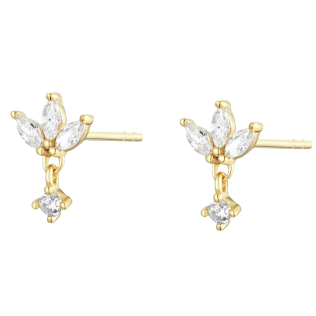 🤍✨ Elegantní pozlacené náušnice s čirými zirkony představují dokonalou rovnováhu mezi jemností a luxusním leskem 💎. Precizně osazené zirkony dodávají šperku třpyt připomínající diamantový lesk, zatímco květinový tvar působí ženským a harmonickým dojmem ✨.