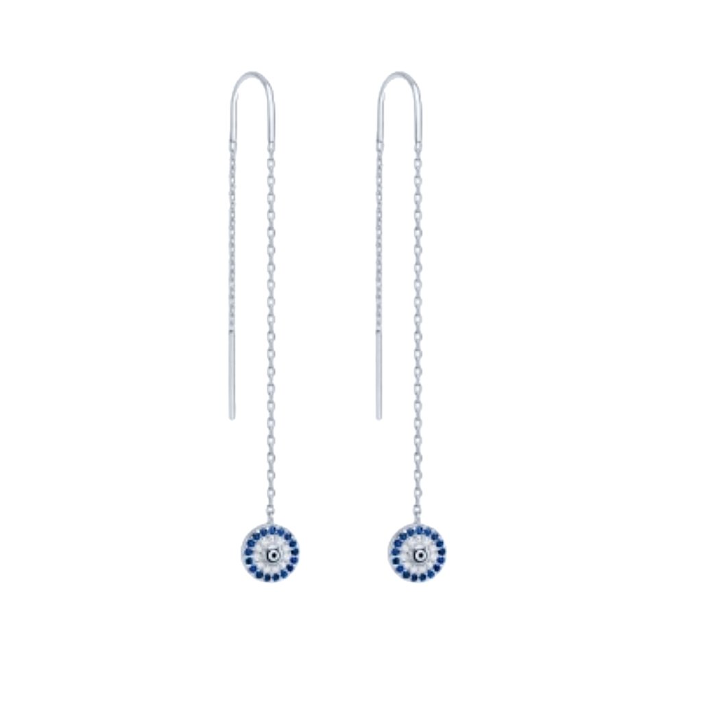 Řetízkové náušnice ochranný symbol Boží oko, rhodiované