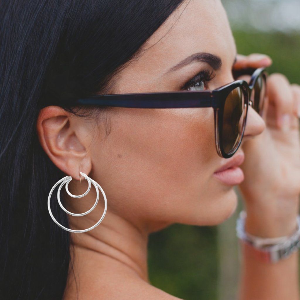 Stříbrnétrojité kruhové náušnice Silver Orbit