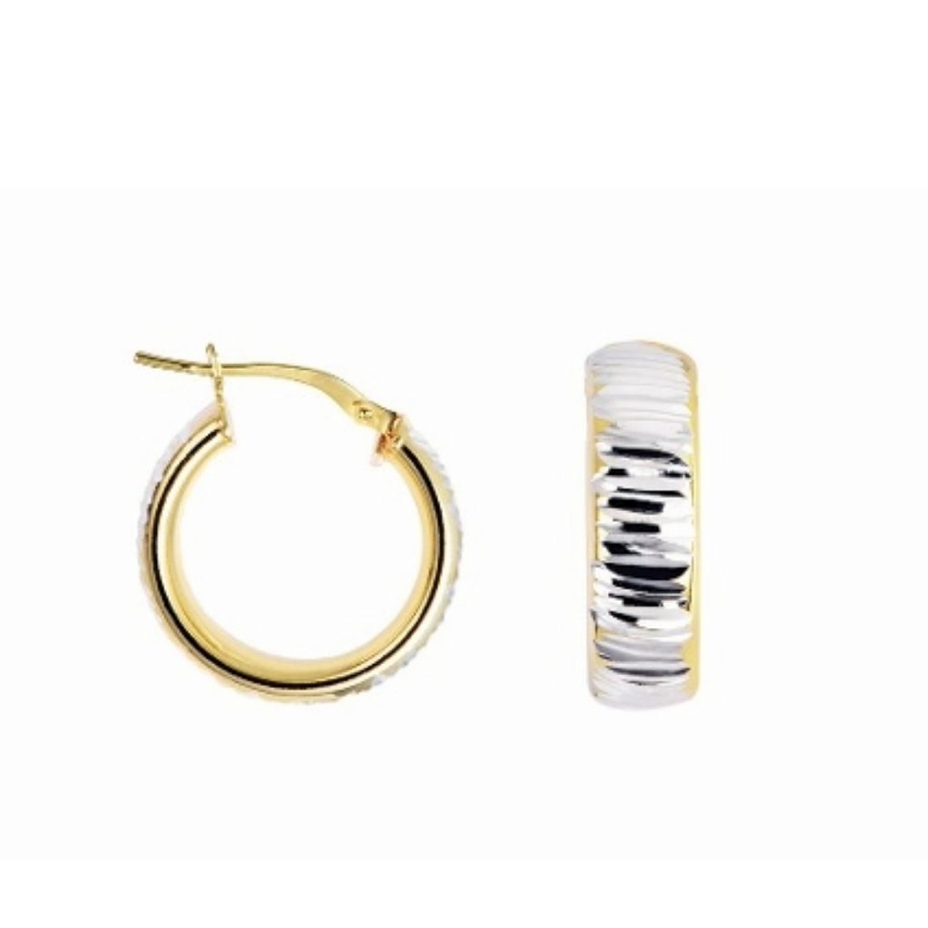 Stříbrné kruhové náušnice s diamantovým výbrusem a zlatým okrajem