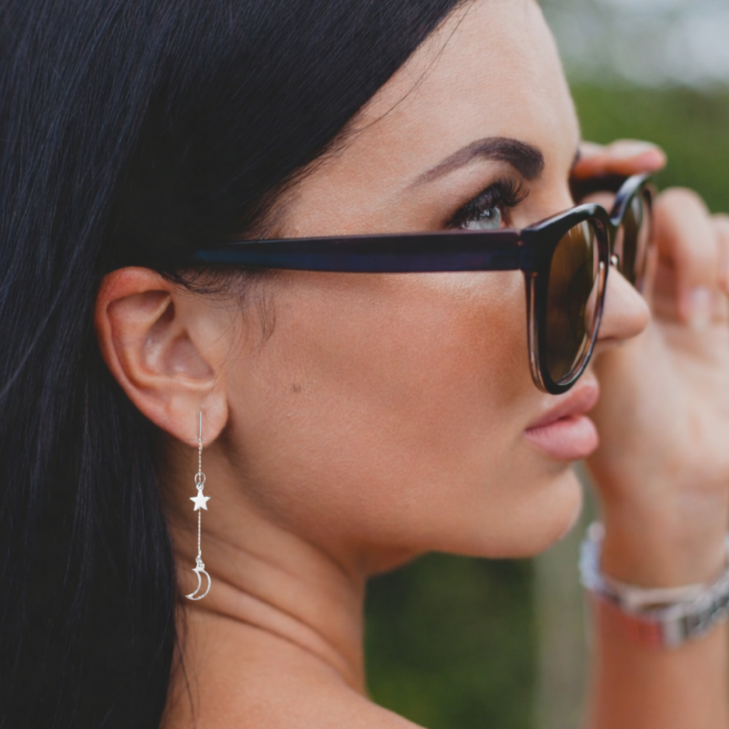 Jemný dlouhý design s elegantním řetízkem dodává náušnicím lehkost a pohyb. Přívěsky ve tvaru hvězdy a měsíce vytvářejí romantický detail, který symbolizuje sny, rovnováhu a nekonečné možnosti 🌙⭐