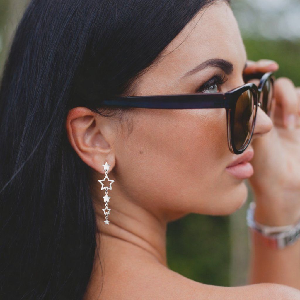 Visací design tvoří několik hvězdiček různých velikostí, které jsou propojené do elegantní linie. Tento detail vytváří krásný pohyb při každém kroku a dodává náušnicím lehkost a dynamiku.