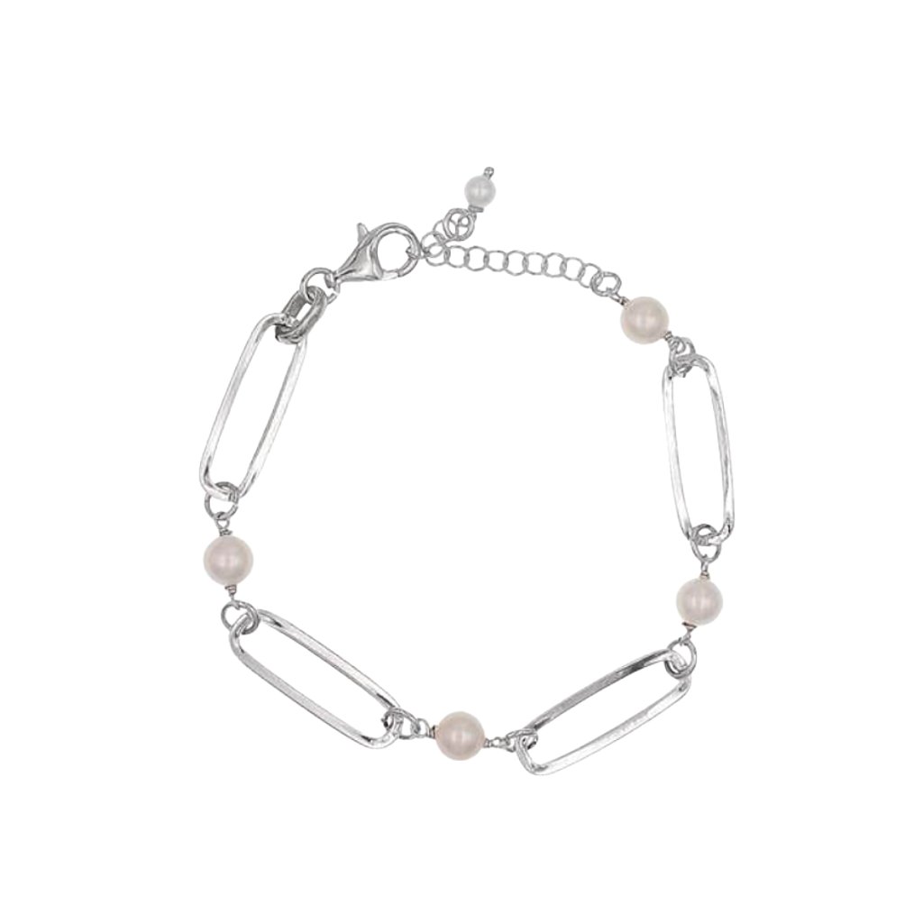 Stříbrný článkový náramek s perlami