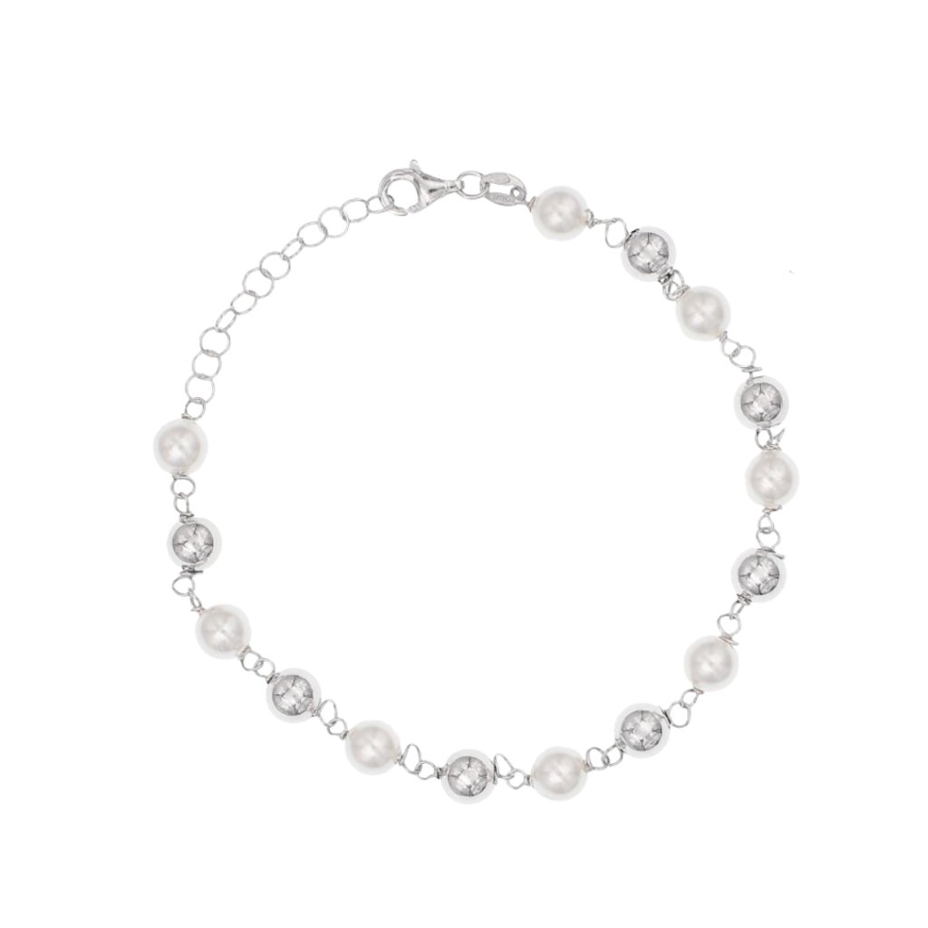 Stříbrný náramek s kuličkami a perlami Lumina