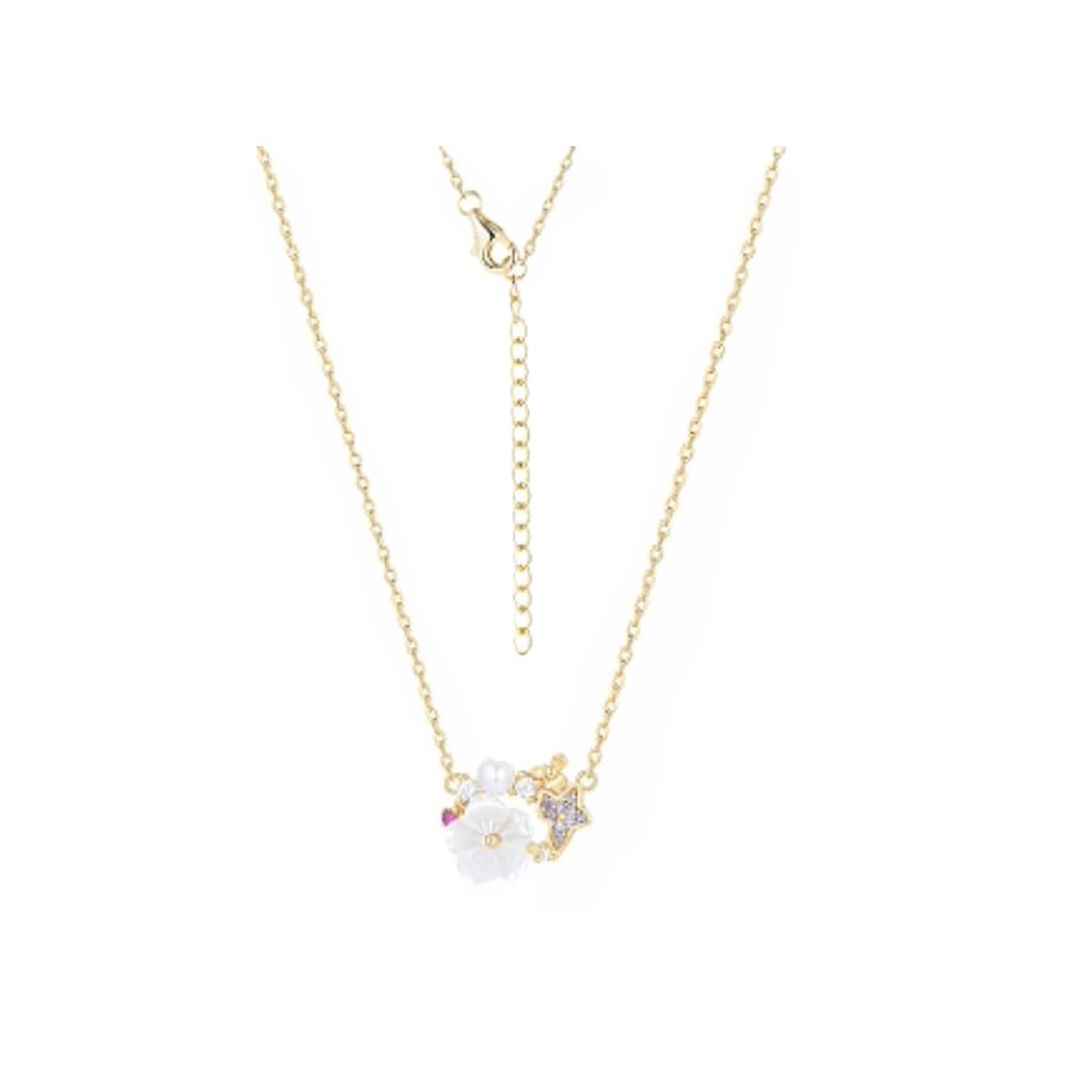 Tento elegantní  pozlacený řetízek s perletí a přívěskem květinavám  krásně podtrhne linii krku a dodá šmrnc jakémukoli outfitu. Perfektní volba pro romantické ženy, které milují motiv květin a přírody.