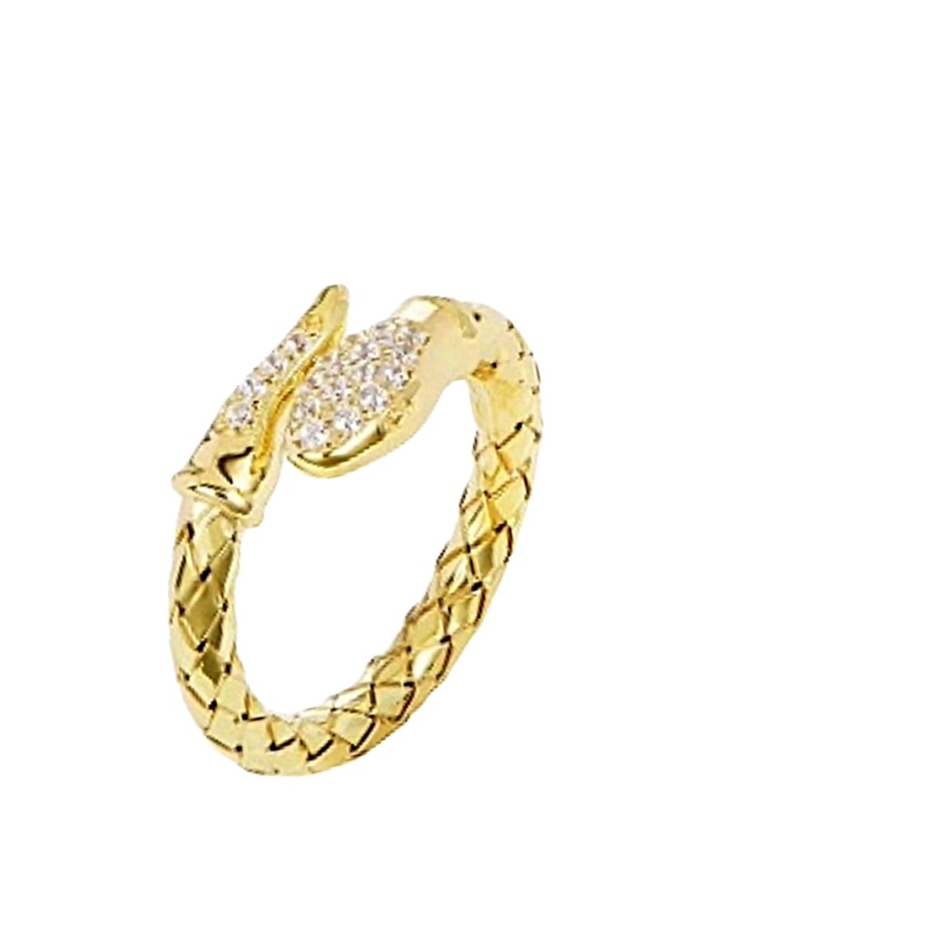 🐍 Elegantní pozlacený prsten s hadem osazený zirkony – šperk s hloubkou a kouzlem mystična 💙