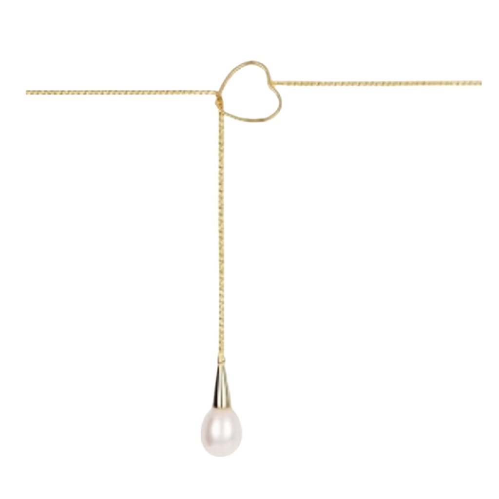 Zlatý řetízek s přívěskem srdce a visící říční perlou